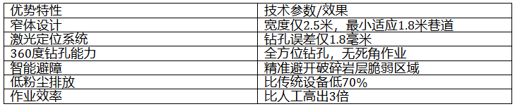 鹏翔智装小断面掘进钻车针对狭窄巷道作业场景研发,具备以下核心优势: